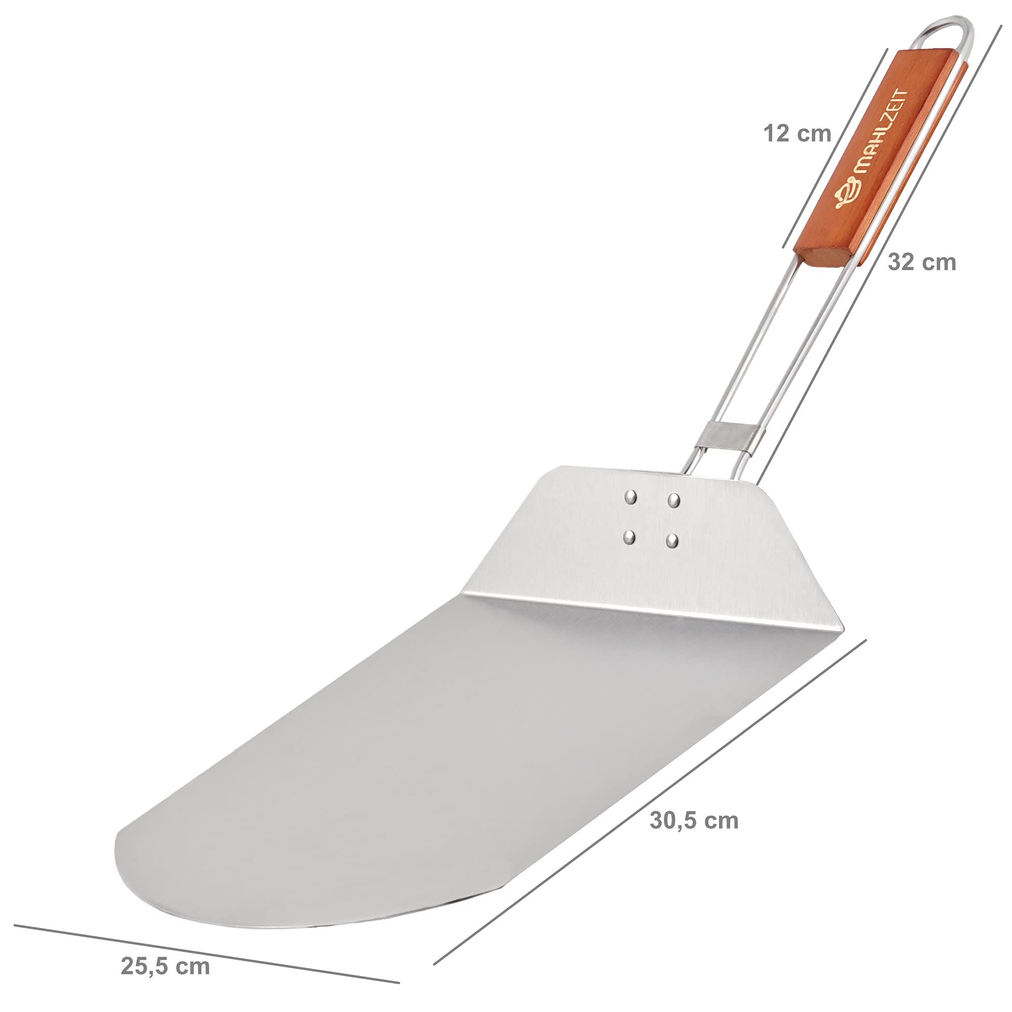 Mahlzeit Edelstahl Pizzaschieber mit Bambus Griff | 25,5 x 30,5 cm | Pizzaschaufel für Pizzaofen | Pizzawender zum Backen | Schieber, Grillzubehör, Schaufel, Pizzapaddel, Klappgriff